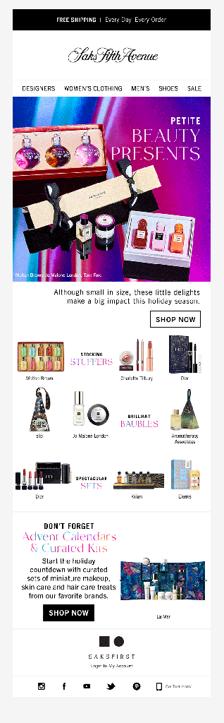 Saks Fifth Avenue Email Marketing Designer Fashion, Accessories & Beauty Beauty Holiday Gift Guides Site Marketing Share this: Click to share on X (Opens in new window) X Click to share on Facebook (Opens in new window) Facebook Like Loading...